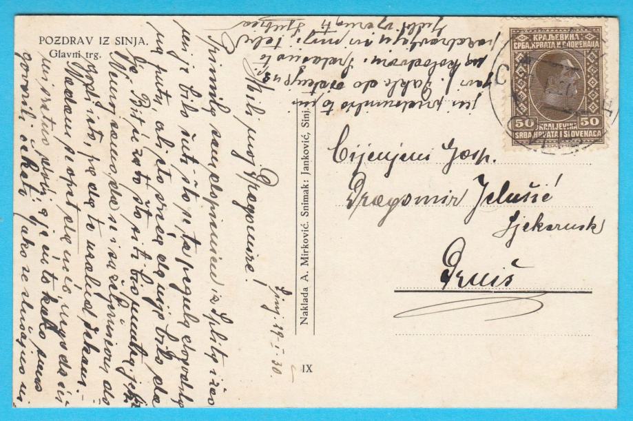 SINJ - Glavni Trg ... stara razglednica, putovala 1930. godine u Drni