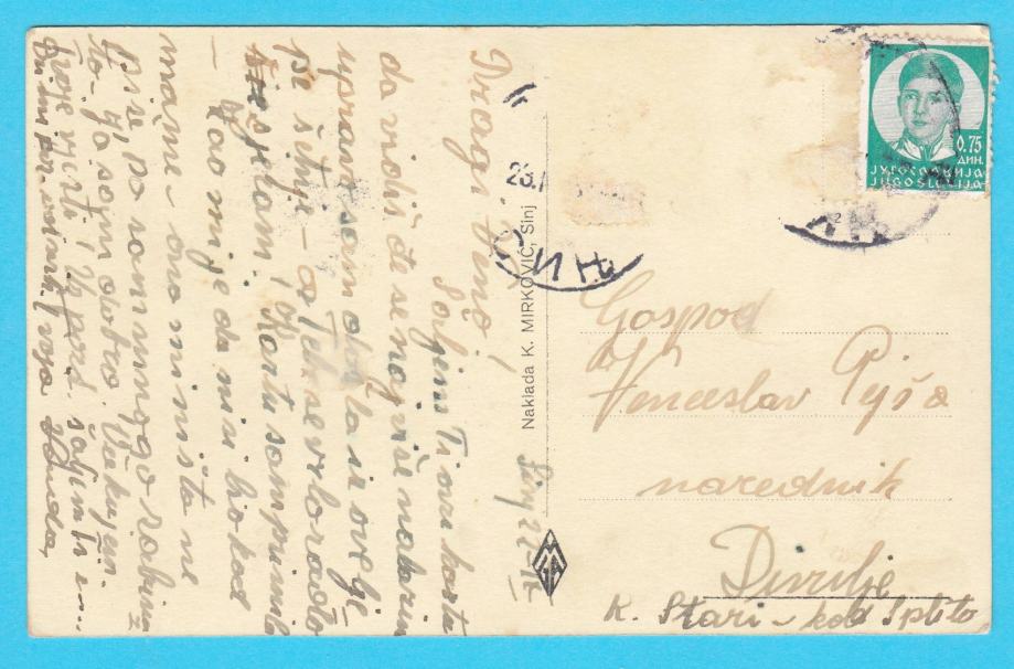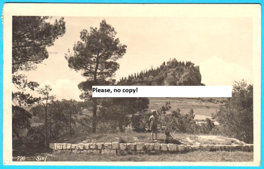 SINJ - pogled na tvrđavu * stara razglednica, putovala 1930-tih godina