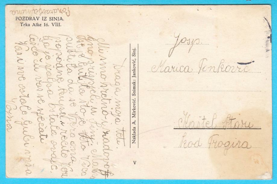 SINJ - Trka Alke 6.VIII * stara razglednica, putovala 1930-tih