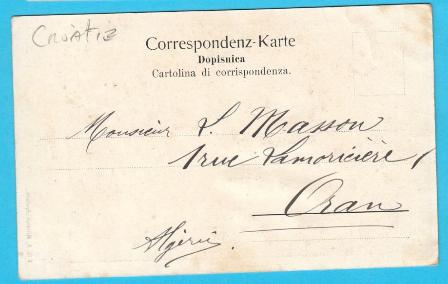Razglednica je izdanje do 1905. godine (duga adresa) ali je putovala nešto kasnije 1010. godine.