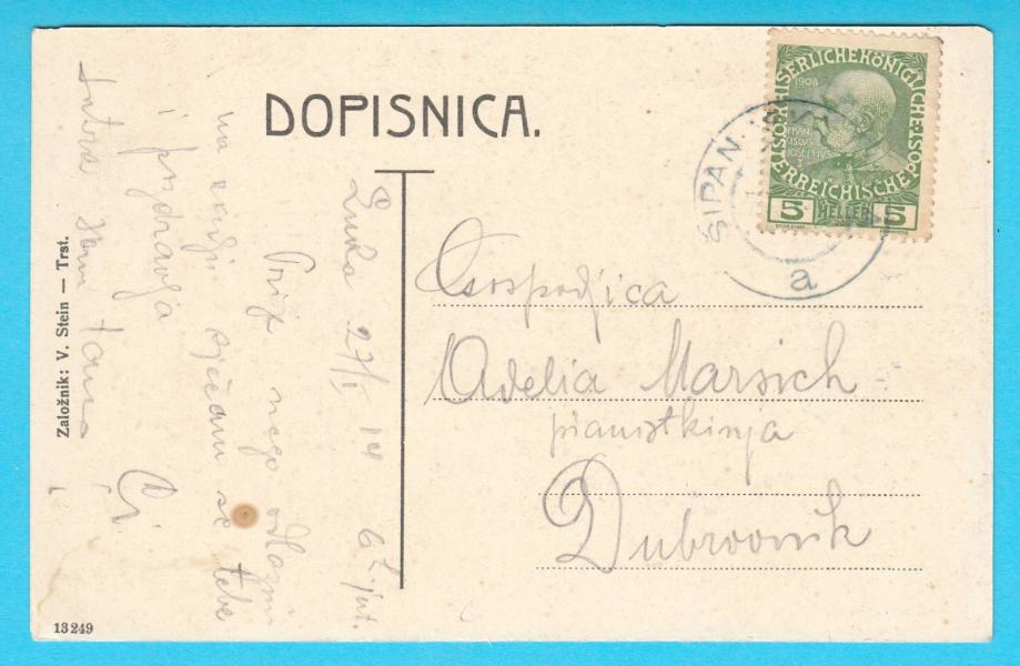 Stara austro-ugarska razglednica Šipana, putovala 1914. godine.