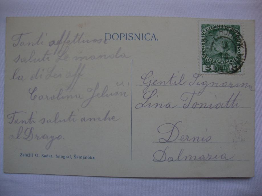 ŠKOFJALOKA postcard Slovenia - dopisnica 1913. putovala za Drniš