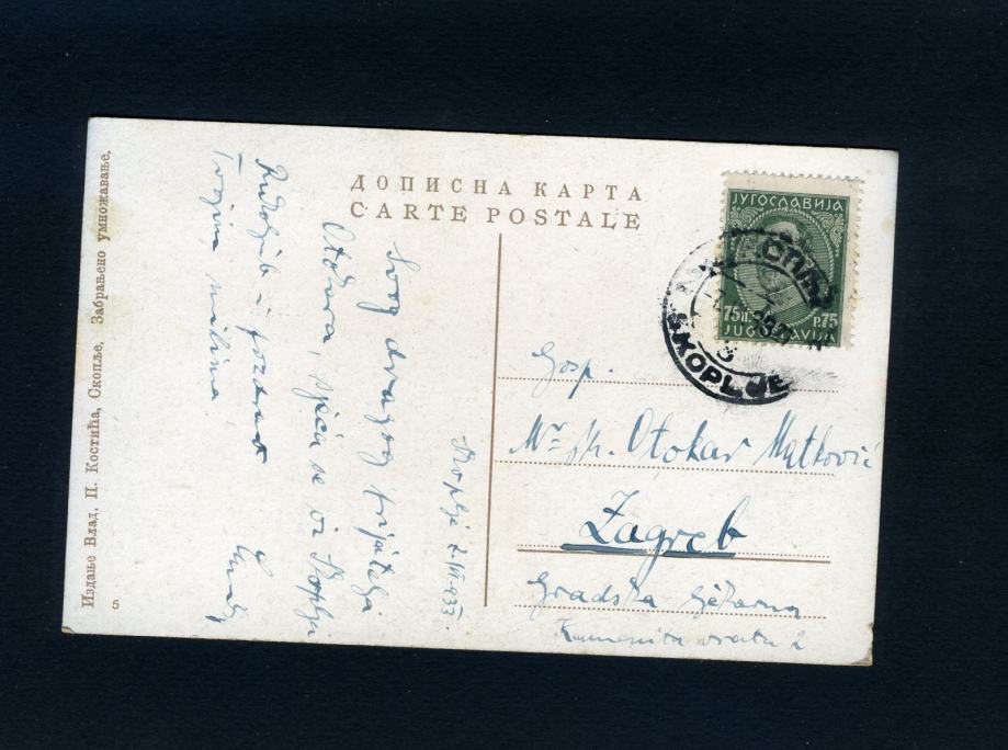 Skoplje, kraljevina, putovala razglednica za Zagreb