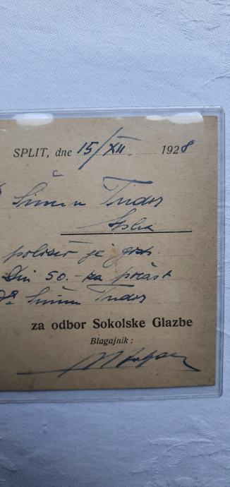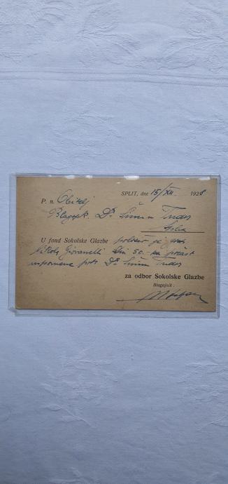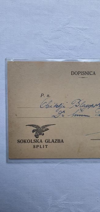 SOKOLSKA GLAZBA SPLIT 1928 DOPISNICA