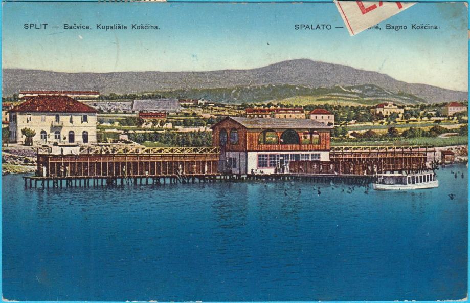 SPLIT Bačvice. Kupalište Koščina EXPRESS POŠTA (2x20 hellera) Putovala