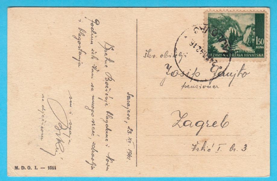 SRETAN BOŽIĆ (NDH) Hrvatska čestitka - razglednica, putovala 1942. g.