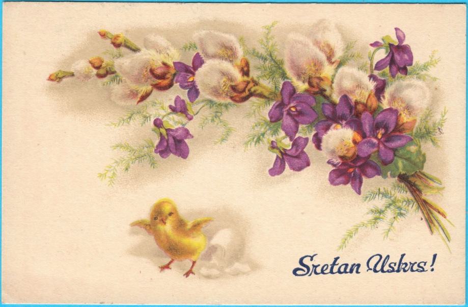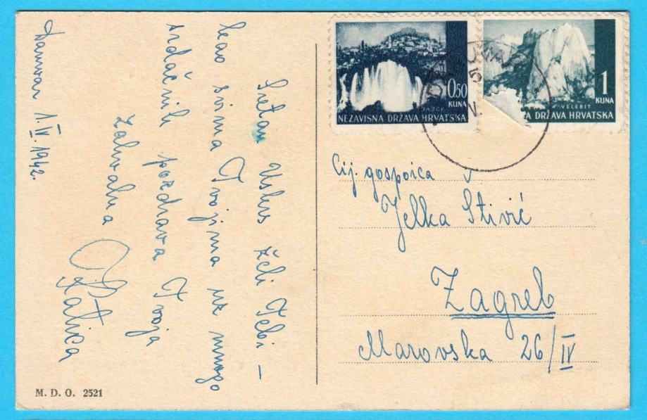 Prekrasna stara čestitka, putovala ratne 1942. godine (NDH).