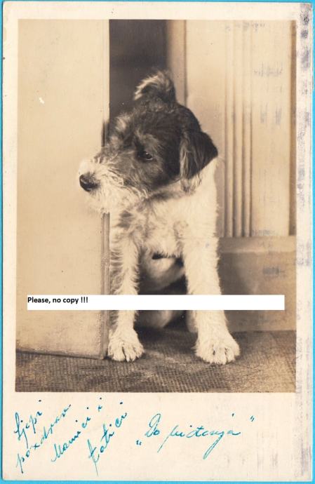 Stara čestitka (NDH) Pas (Fox terrier ?), putov. 1944. u Nova Gradiška
