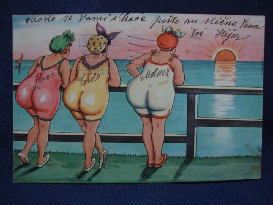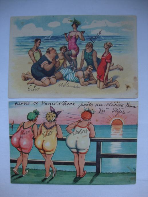 Umjetničke stare šaljive dopisnice putovale skupa na jednoj je markica na drugoj nije