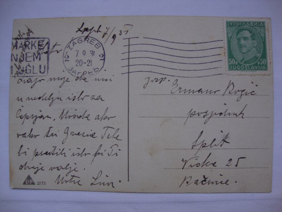 Stara dopisnica iz 1931. godine Putovale Zagreb -Split
