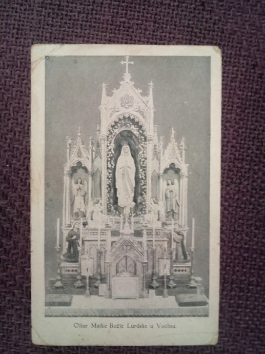 Prodajem dopisnicu staru vise od 110 godina.Na slici Oltar Majke Bozje Lurdske u Vocinu.