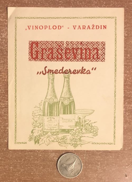STARA ETIKETA SA BOCE - GRAŠEVINA SMEDEREVKA, VINOPLOD VARAŽDIN
