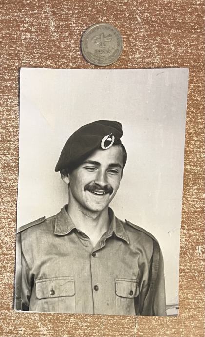 STARA FOTO - JNA, PADOBRANAC SA BERETKOM I METALNOM OZNAKOM