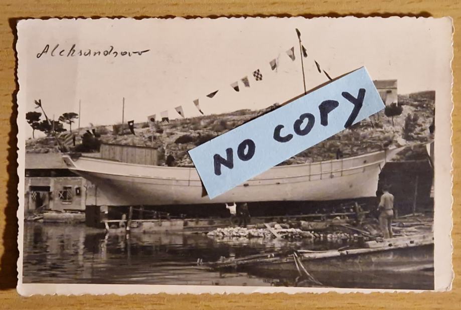 Stara foto razglednica Porinuće barke Aleksandrovo Krk Punat
