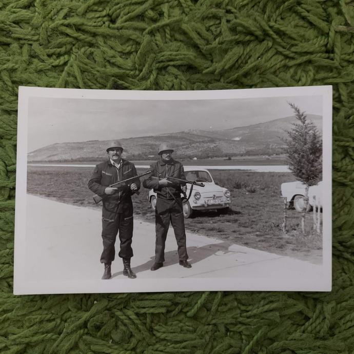 Vojna fotografija Fićo na splitskom aerodromu s pripadnicima TO