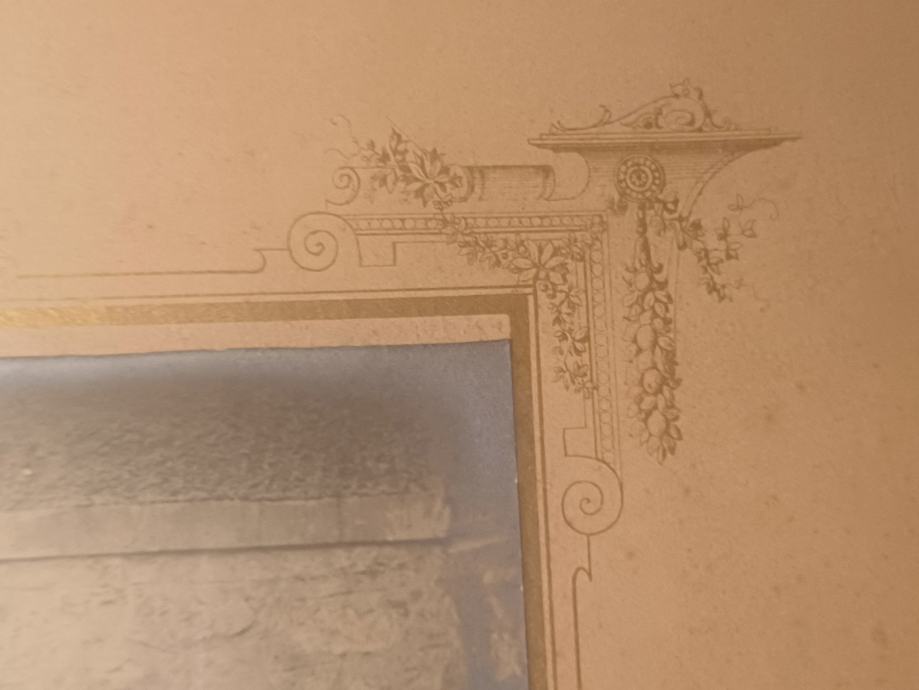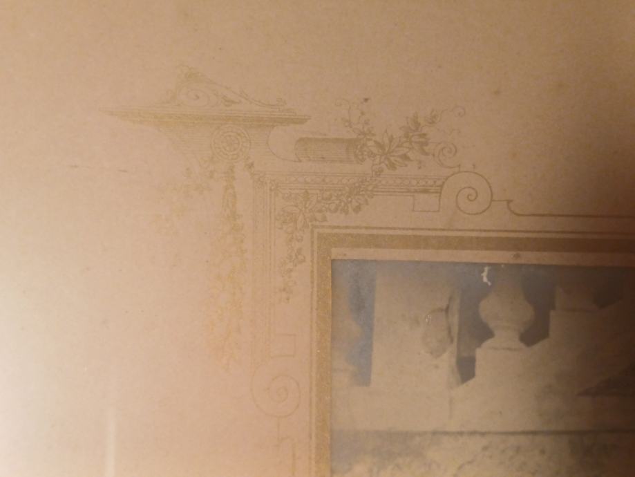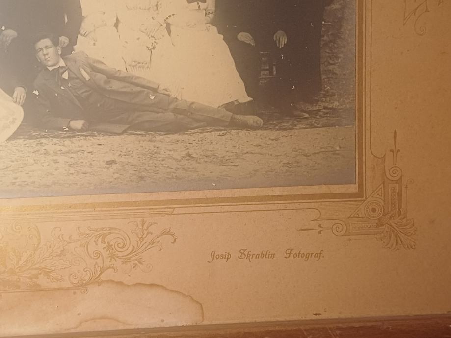 Dolnji dio kartona na koji je zalijepljena fotografija oštećen vlagom, vidljivo na slikama