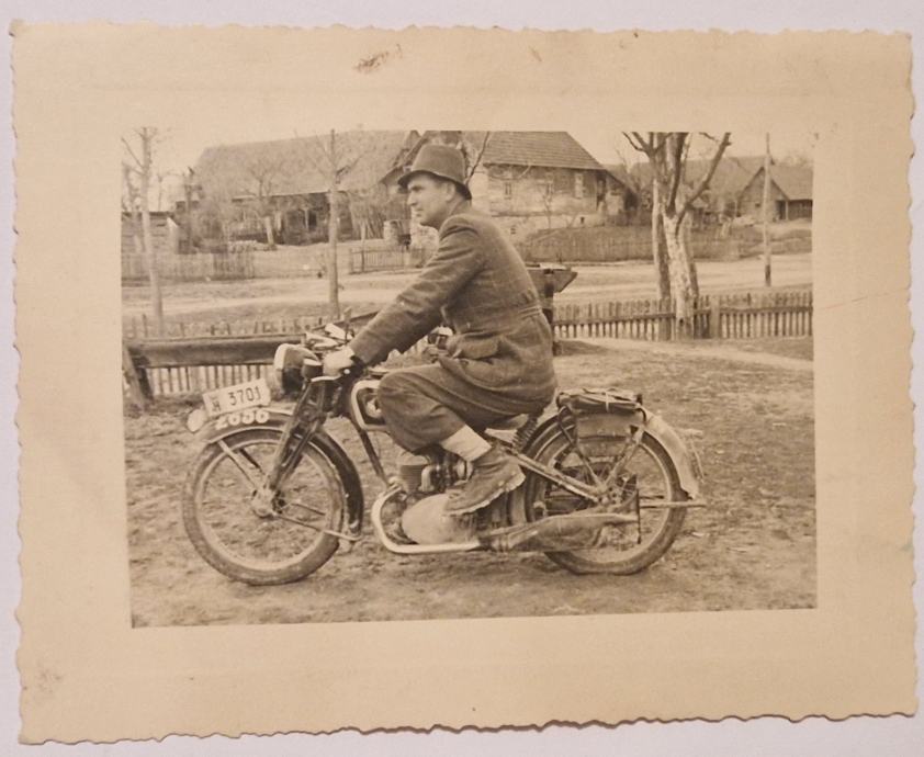 Stara fotografija Motorist Selo kod Zagreba 1943. NDH