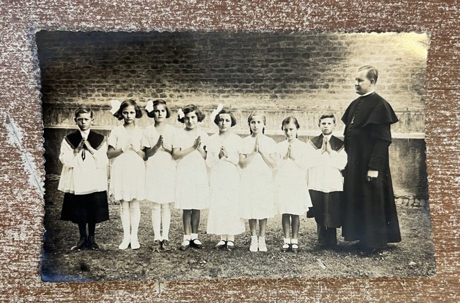 STARA FOTOGRAFIJA - POPOVAC, BARANJA - DJECA SA SCEĆENIKOM