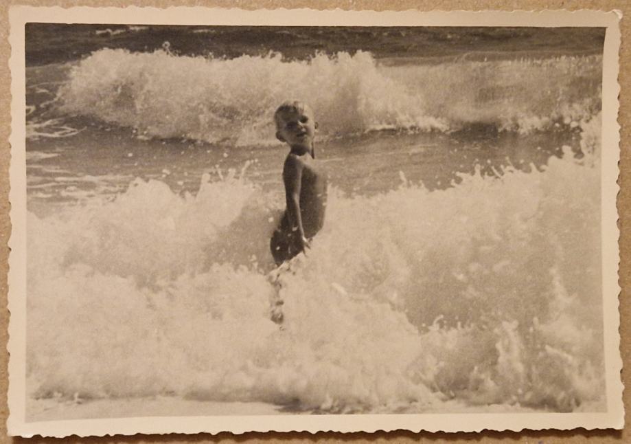 Stara fotografija RPPC cca 1920. Baška plaža Dječak u valovima