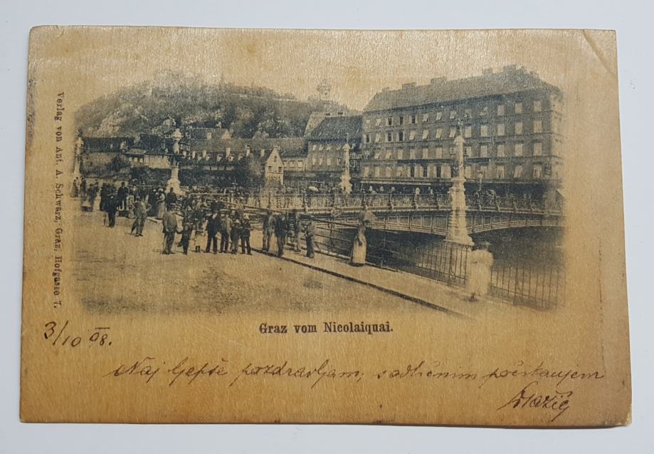 STARA RAZGLEDNICA MARERIJAL DRVO, GRAZ AUSTRIA NICOLAIQUAI, 1898. g.