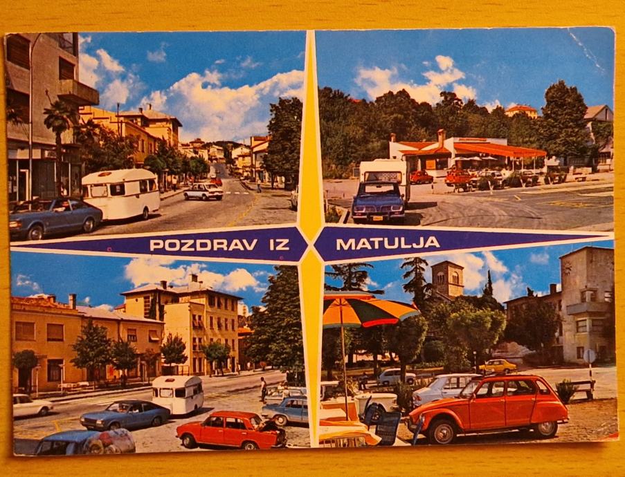 Stara razglednica Matulji Stari auti Stare kamp kućice