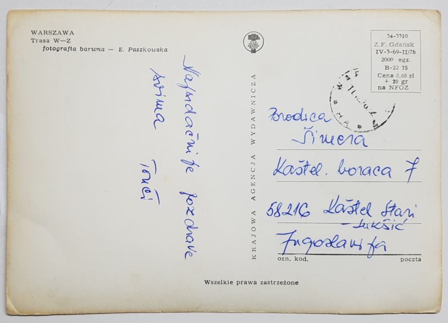 STARA RAZGLEDNICA, POLJSKA, VARŠAVA, 1976, WARSZAWA TRASA