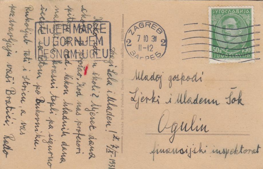 STARA RAZGLEDNICA ZAGREB TRG BANA JELAČIĆA 1931 GODINA