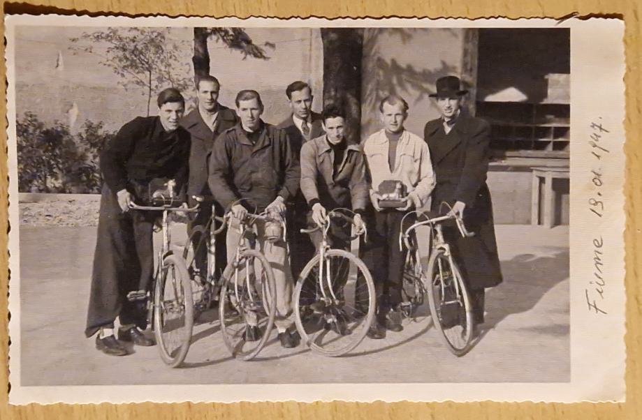 Stara RPPC fotografija Biciklisti Fiume 1947. Rijeka