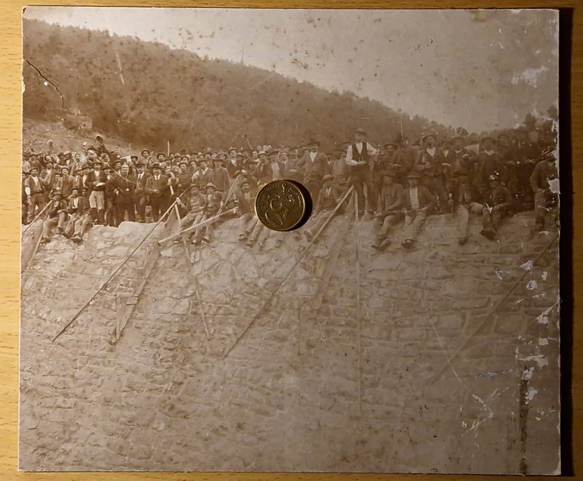 Stara velika kaširana fotografija Lika gradnja potpornog zida