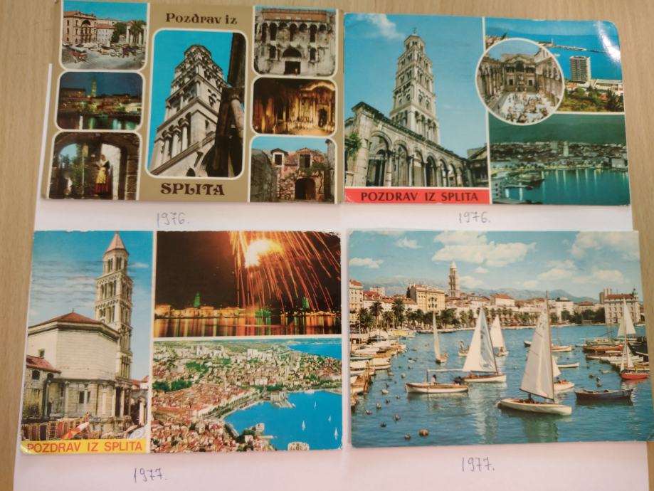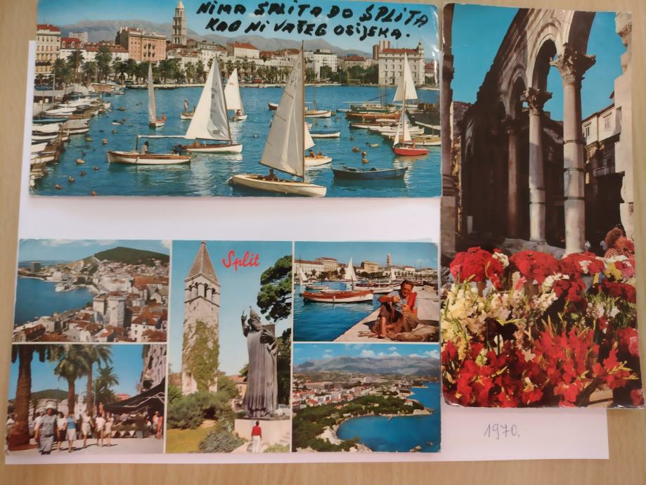 Prodajem 35 kom razglednica Splita, 10 kom razglednica Sibenika, 2 kom Srime i 9 kom Vodica za 28 € lot. Moze se kupiti i pojedinacno za 1 € komad.