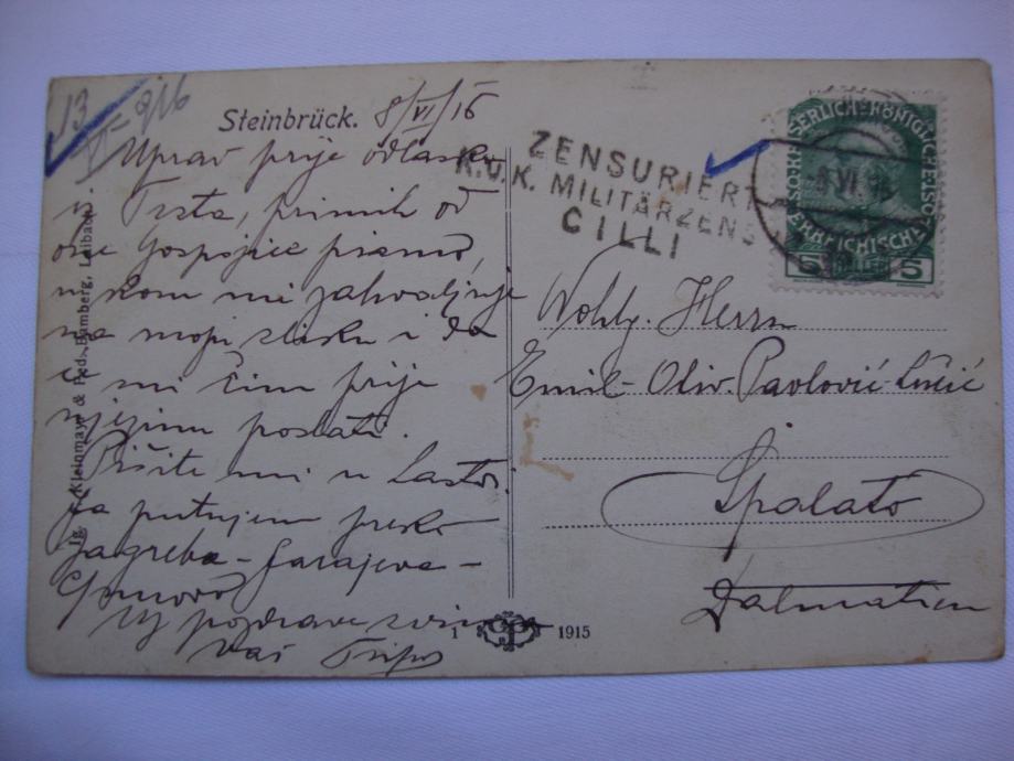 STEINBRUCK 1915. POSTCARD ,Zensuriert kukmilitar.-Dopisnica iz 1915.