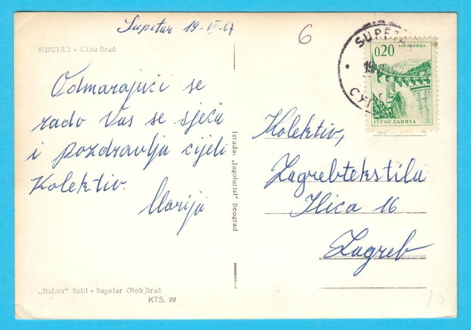 SUPETAR (otok Brač) - stara razglednica, putovala 1967. g. * brod trajekt