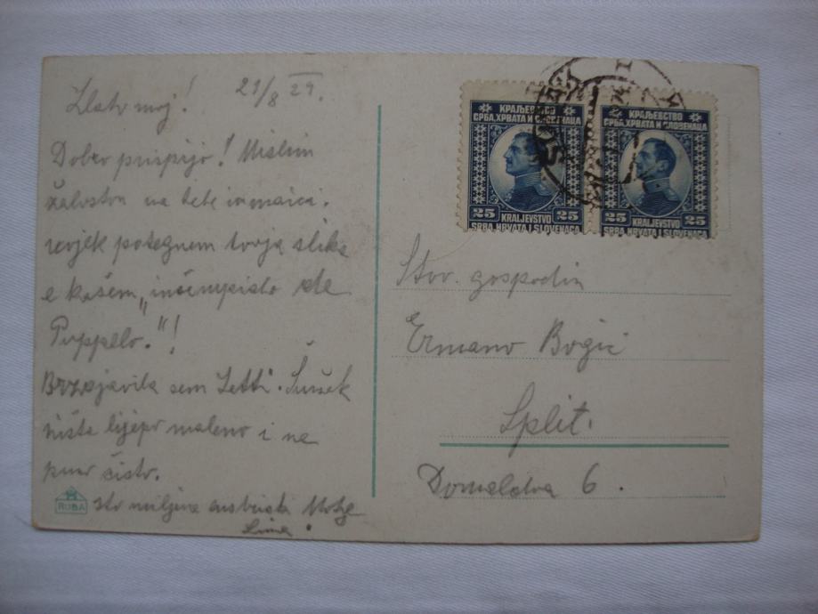 Dopisnica Suška putovala 1929. godine za Split
