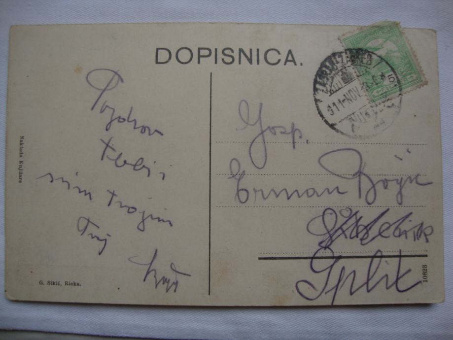 Stara dopisnica Sušak putovala zs Split markca maygposta 5 feler žig Zagreb