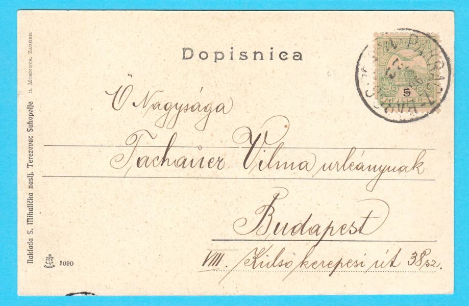 Lijepa stara austro-ugarska razglednica Terezovac-Suhopolje, putovala davne 1906. godine u Budimpeštu.