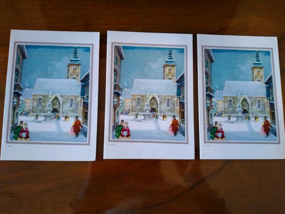 TRI VINTAGE NOVOGODIŠNJE ČESTITKE VLADIMIR KVIRIN STARI ZAGREB