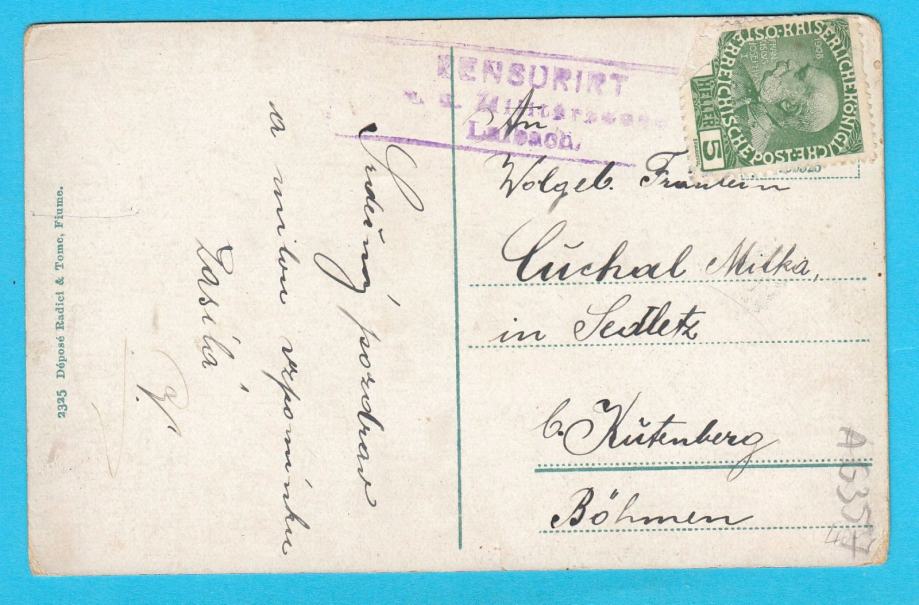 Stara austro-ugarska razglednica, putovala sa žigom K.u.K. cenzure.