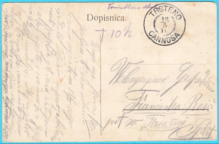 Stara razglednica Trstena kod Dubrovnika, putovala 1910. godine.
