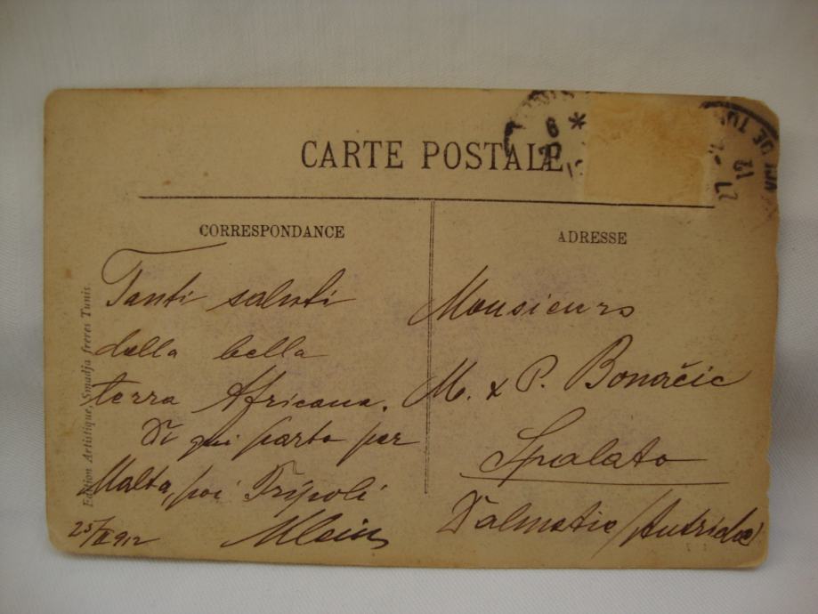 Stara preko 100 godina očuvano ,nedostaje markica, upućena poznatom splitskom trgovcu