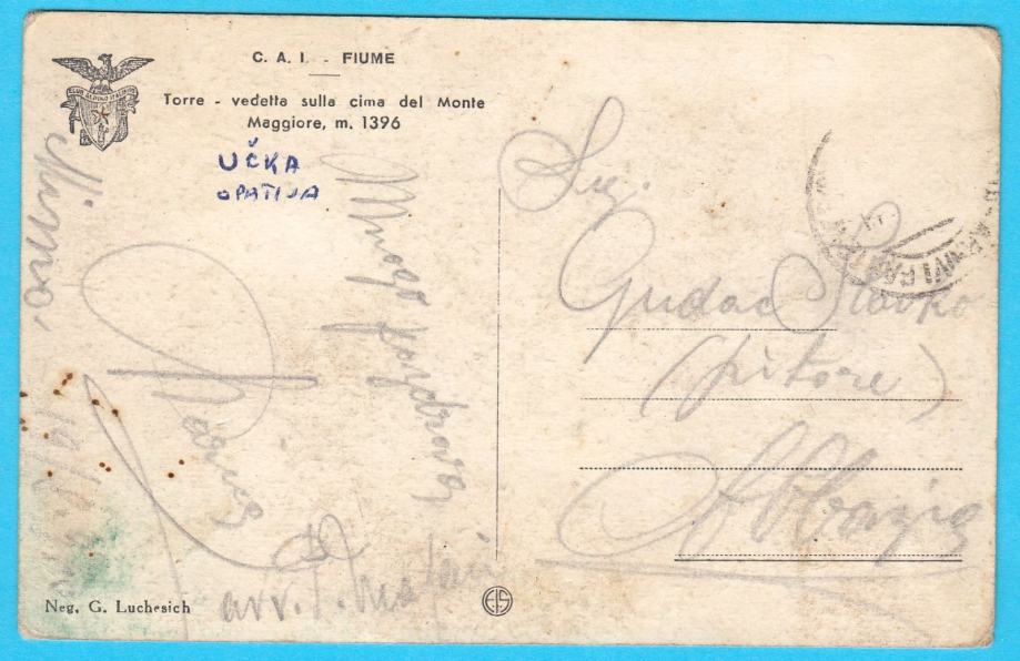 UČKA (Monte Maggiore) Istra Opatija Rijeka Fiume ... stara razglednica