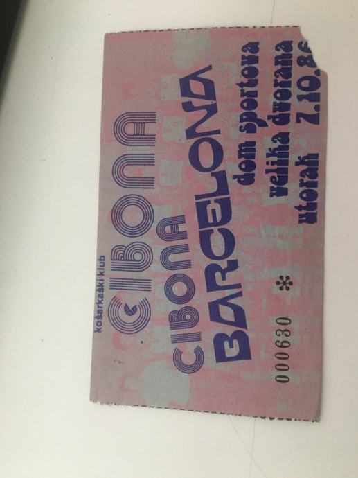 Ulaznicu Cibona - Barcelona iz 1986. godine : FIBA Europski super kup