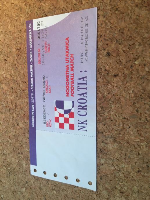 Ulaznica NK Croatia - NK Inker Zaprešić 1996.g.