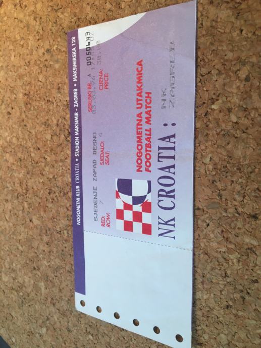 Ulaznica NK Croatia - NK Zagreb1996.g.