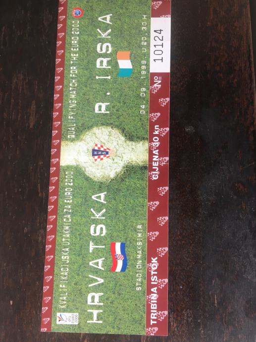 Ulaznica utakmica Hrvatska - Irska - kvalifikacije za Euro 1998.