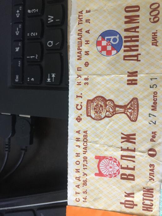 Ulaznica Velež - Dinamo Finale kupa 1986.