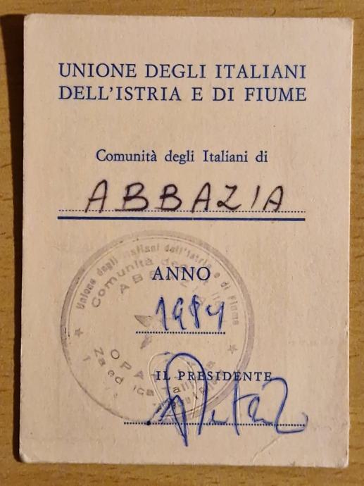 Unione Italiani Istria e Fiume Comunita Abbazia Stara iskaznica