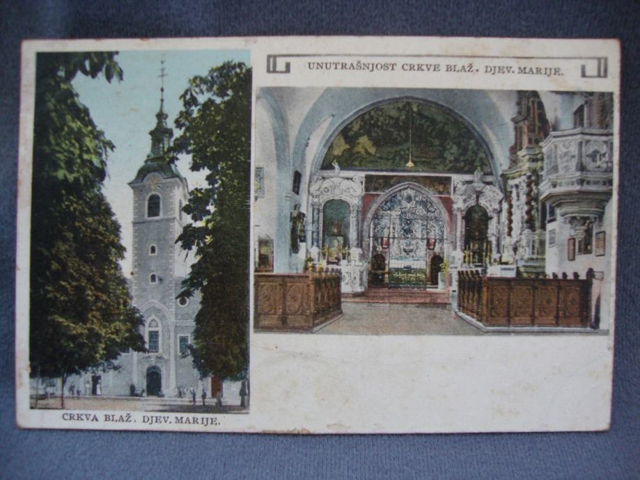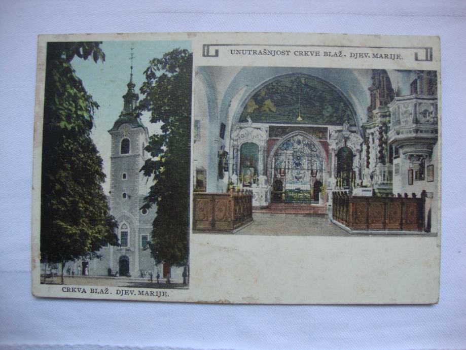 Stara dopisnica SUŠAK - Trsat - interijer crkve Blažene Djevice Marije i same crkve