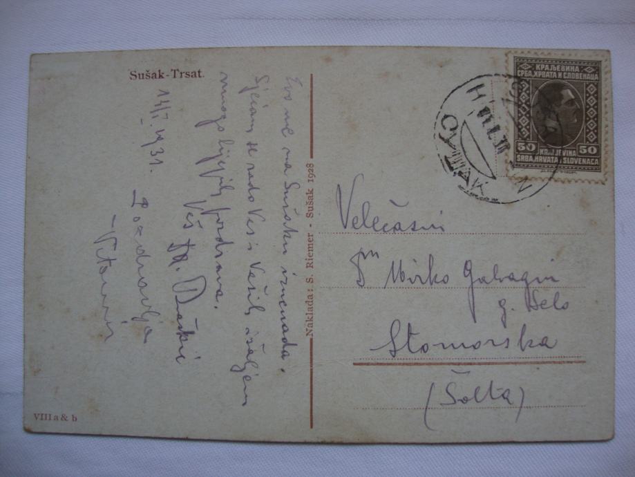 Naklada S.REIMER -SUŠAK 1928 godine a putovala 1931. godine za otok Šoltu
