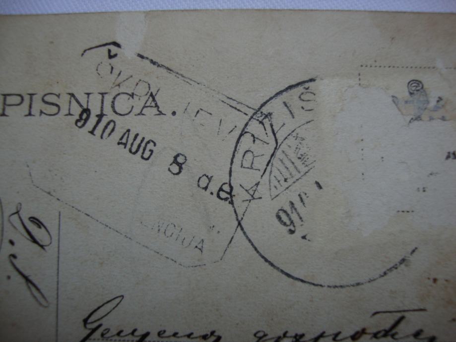 Izradio:svjetlotiskarski zavod R.MOSINGER u Zagrebu ,također dva stara rijetka žiga te je putovala 1910. godine u Škrljevo