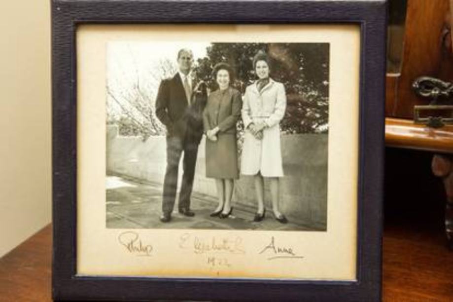 Uramljena i ustakljena veća fotografija britanske kraljice Elizabete ll.